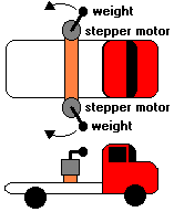 toy truck with two stepper motors. The motors were mounted at the ends of a